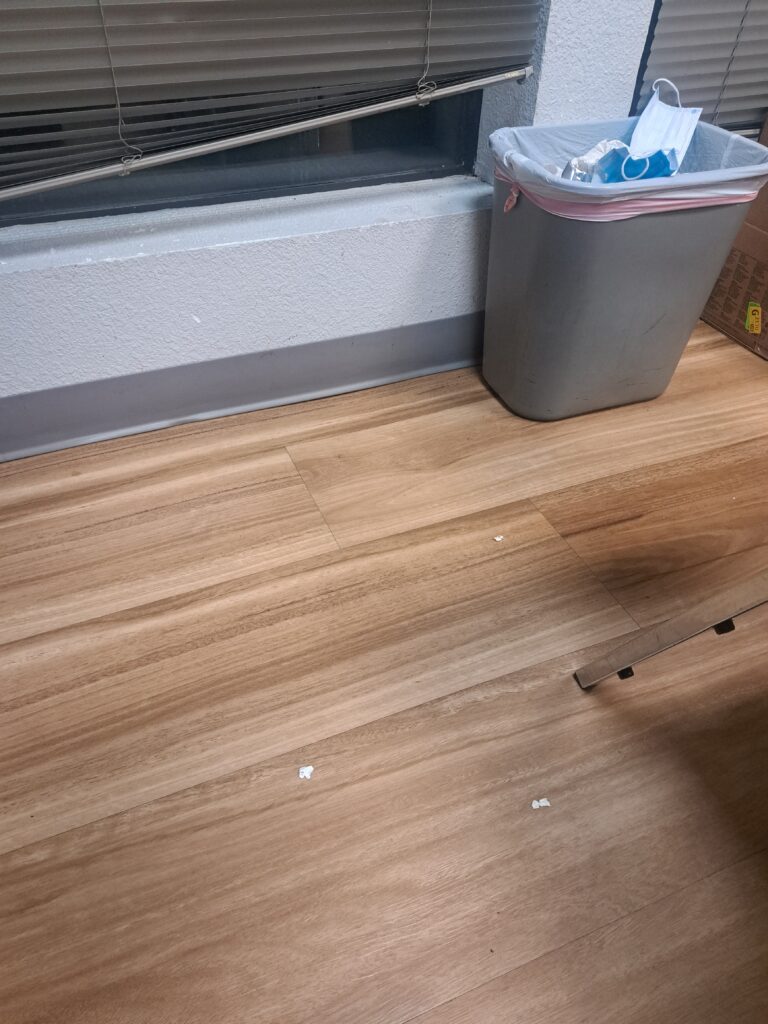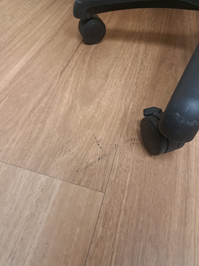 - Scuff marks from chairs and foot traffic